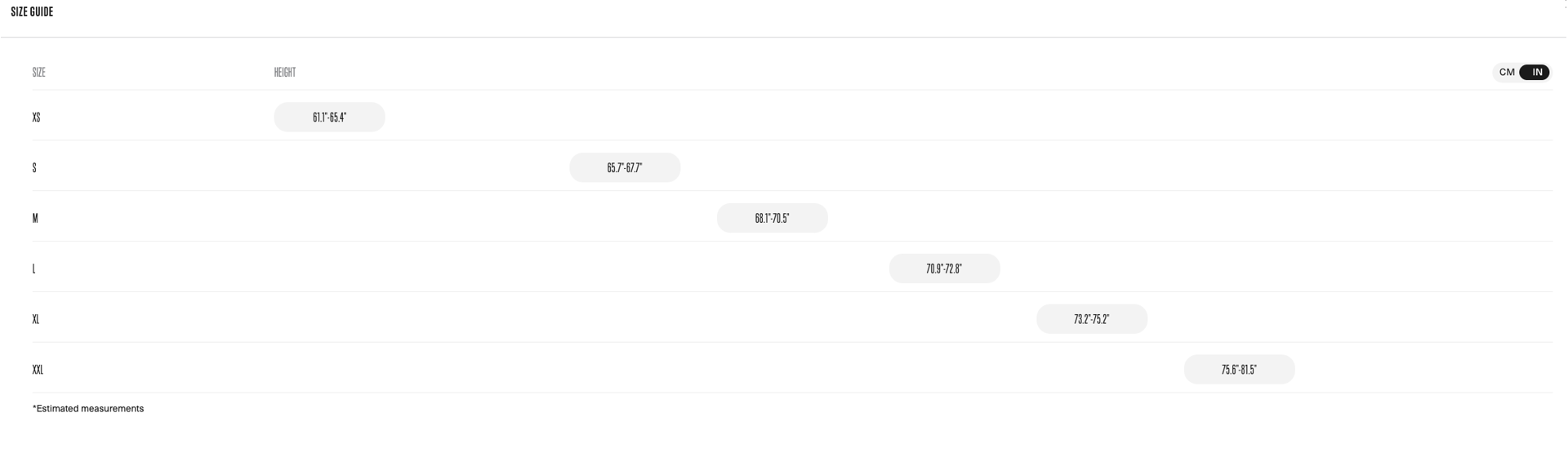 Sizing Information