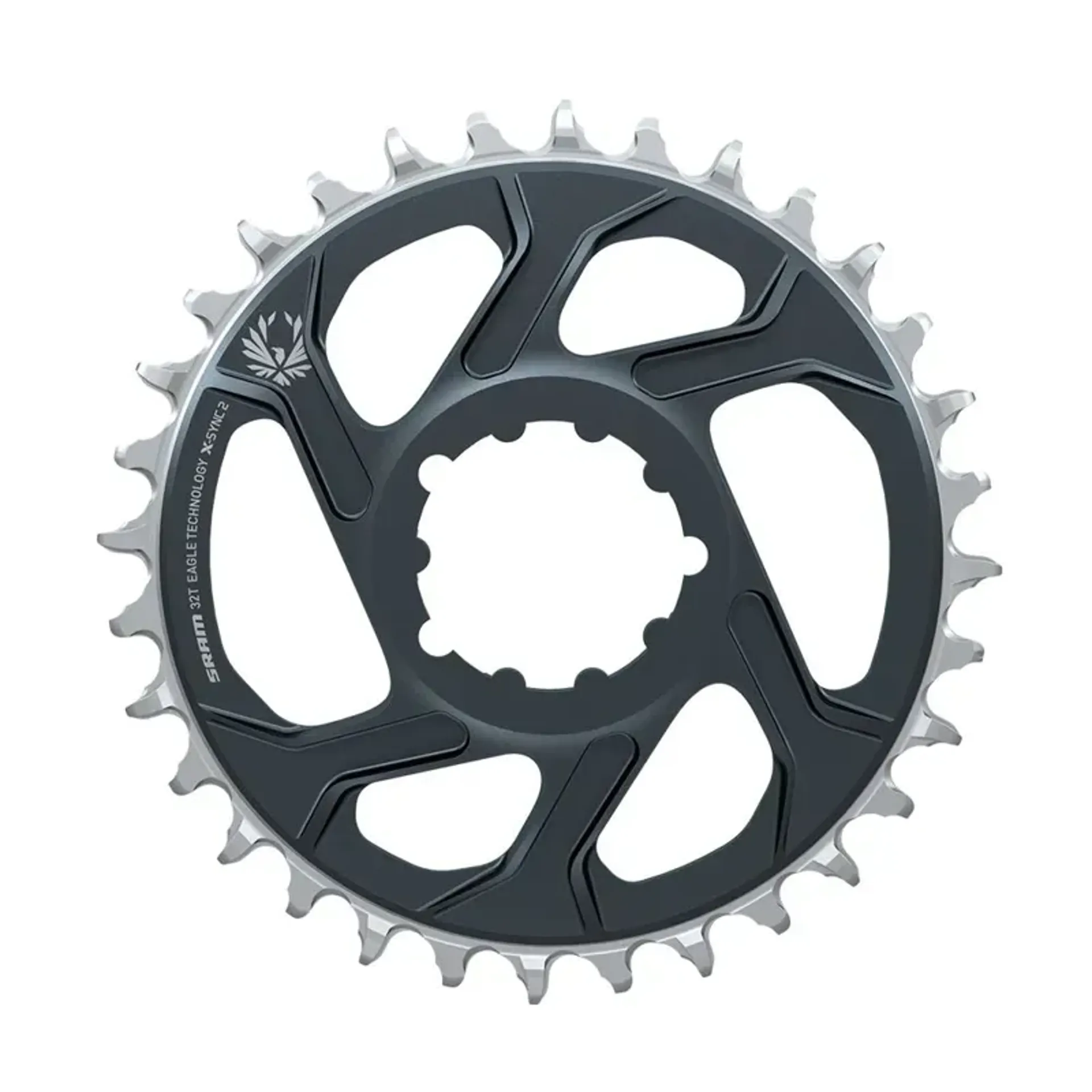 The radical new look and feel of the X-SYNC 2 Eagle chainring is a direct result of SRAM drivetrain engineers studying the performance and wear characteristics of thousands of X-SYNC chainrings. The longer, positive-rake tooth shape has been designed to work perfectly with the new Eagle chain to increase chain retention and overall pedaling efficiency, while decreasing friction, noise and wear.